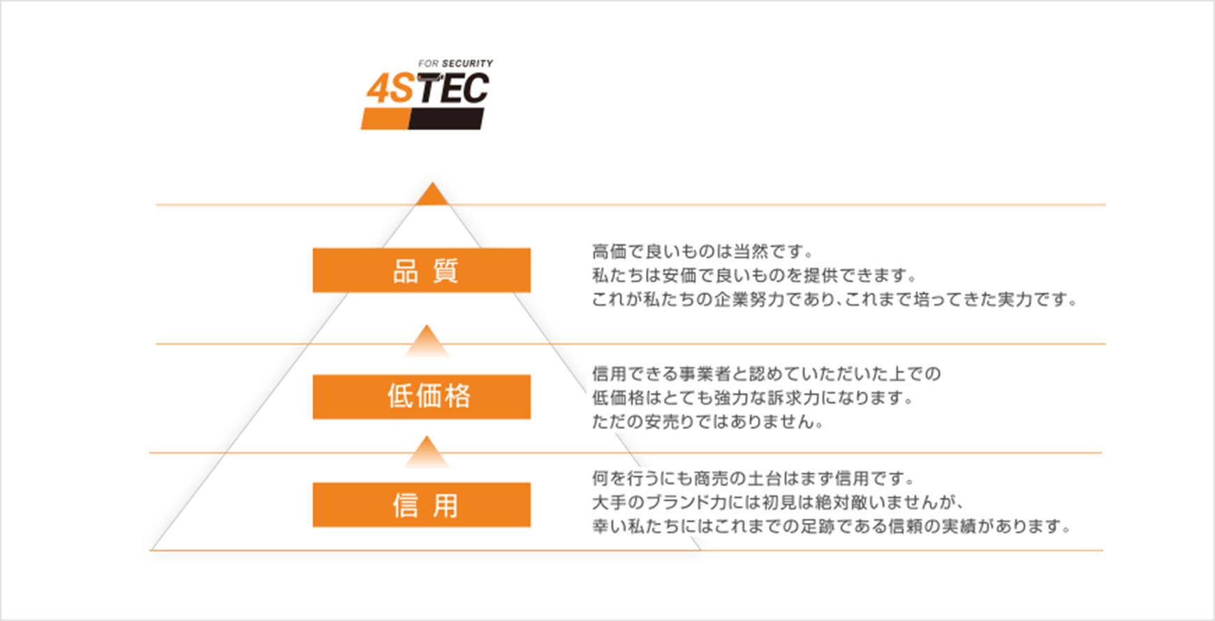 ただの安売りではない、フォーエステックは適正価格を真摯に追求した結果としての低価格となります。